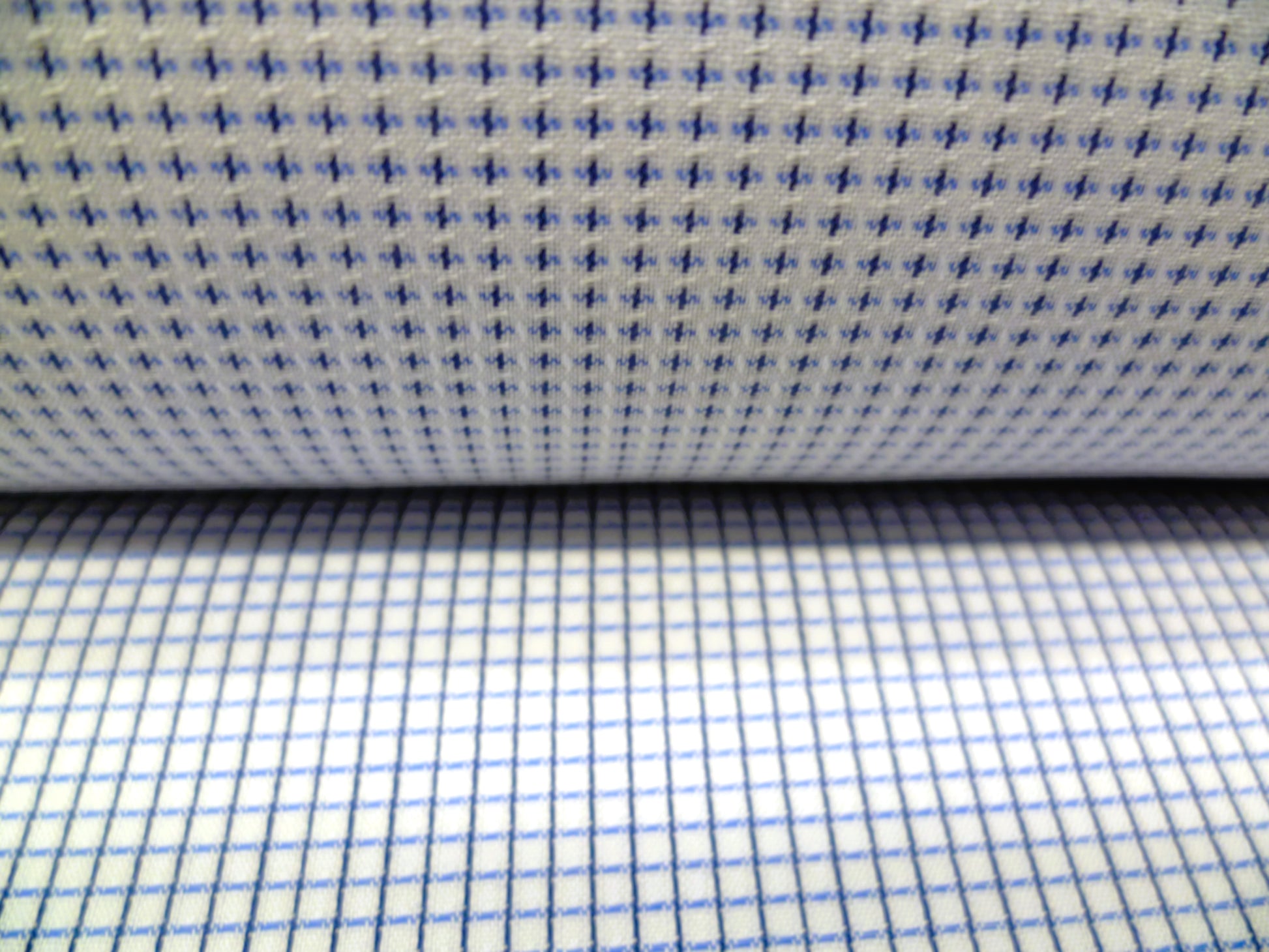 100 % Egyptian cotton, for that fine dress shirt. Close-up of a fabric with blue and white checkered pattern