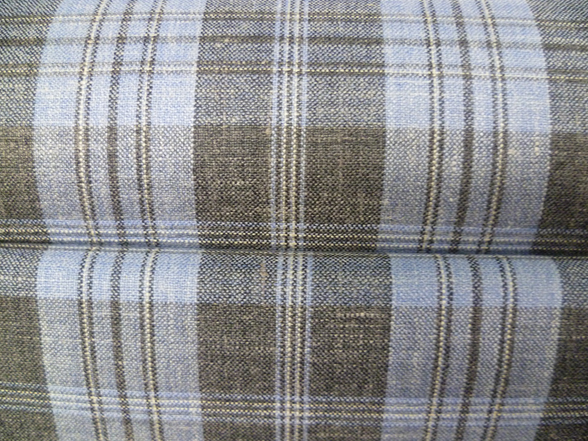 100% Linen. From a renowned Italian mill, for that superb summer suit, jacket or blazer. Charcoal gray, silver gray and sky blue checked plaid.