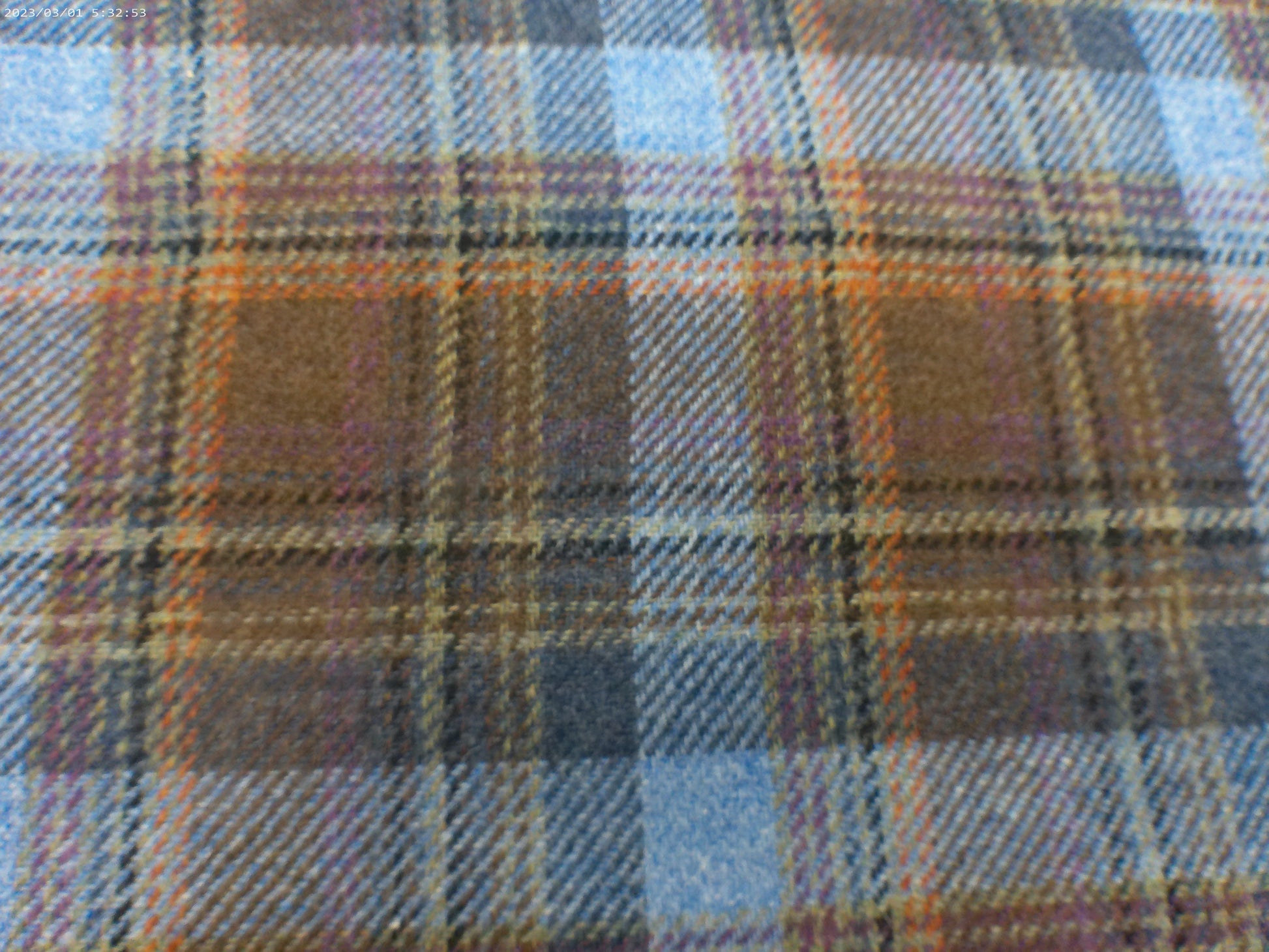 100 % Wool from Italy, For that duffel coat, or jacket, blazer or topcoat. Baby blue, Aubergine, burnt orange , brown black and multi coloured overcheck on a twill background.