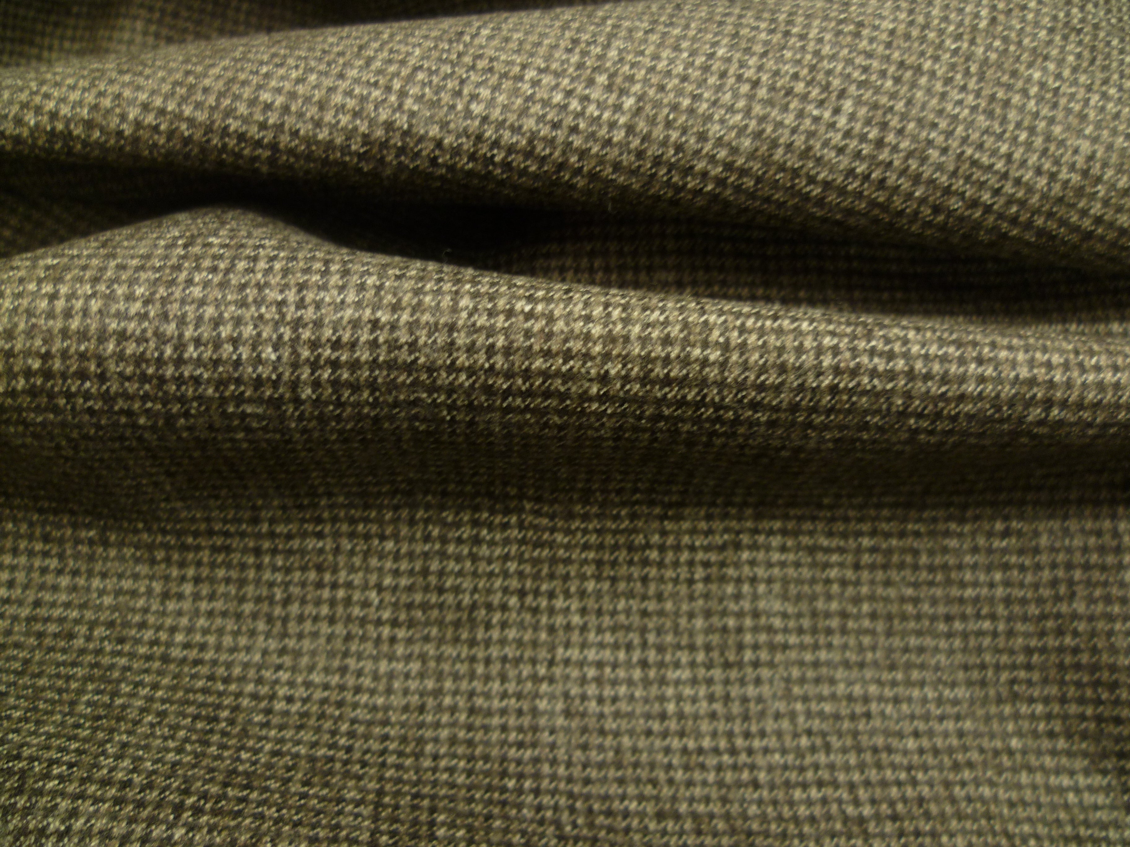 100% Wool worsted flannel. For that exquisite suit, jacket or blazer. Black and fine tobacco neat checked.