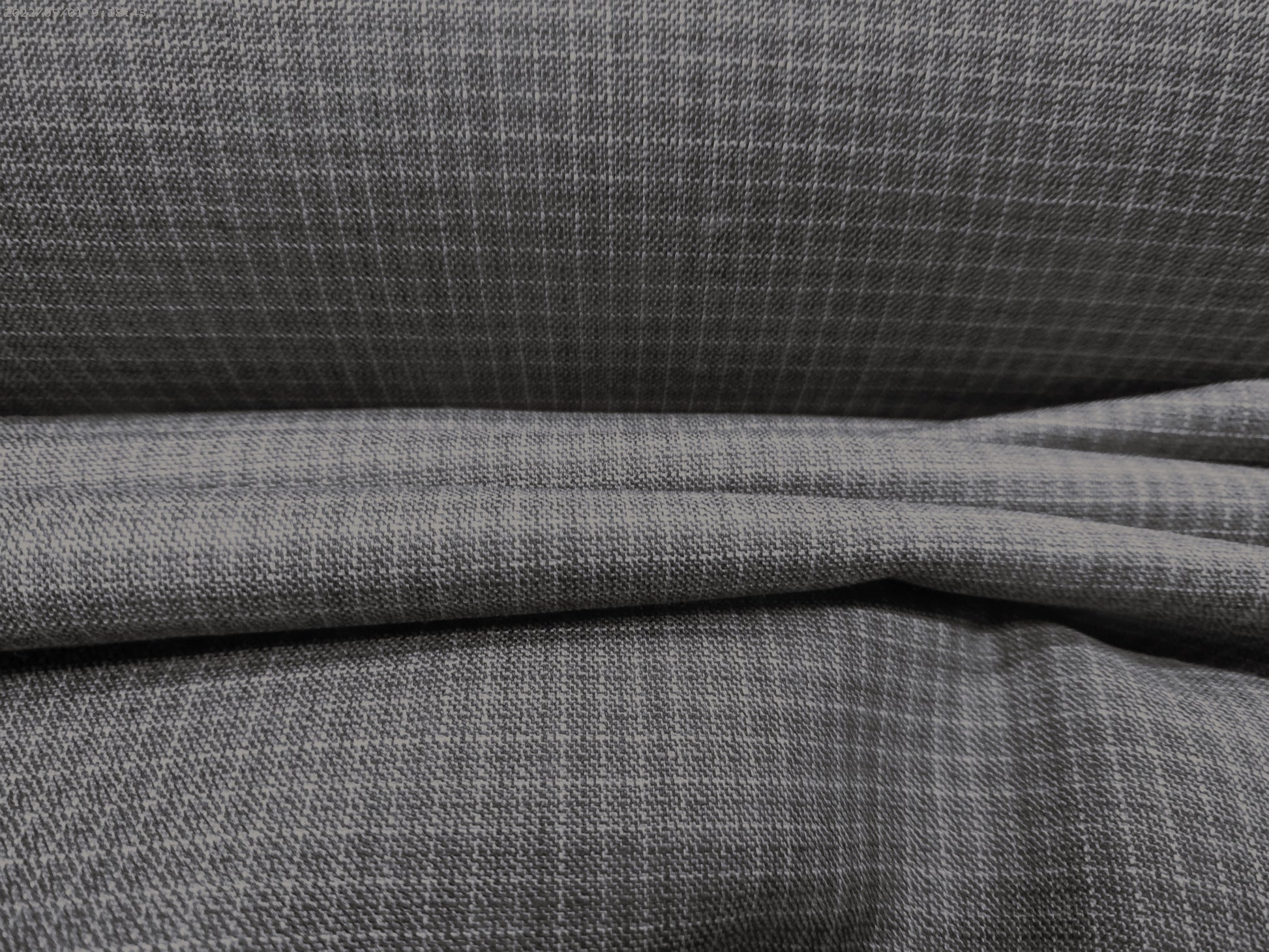 100 % Wool worsted from Italy. For that exquisite suit for men and women. Grey and charcoal fine checked pattern.
