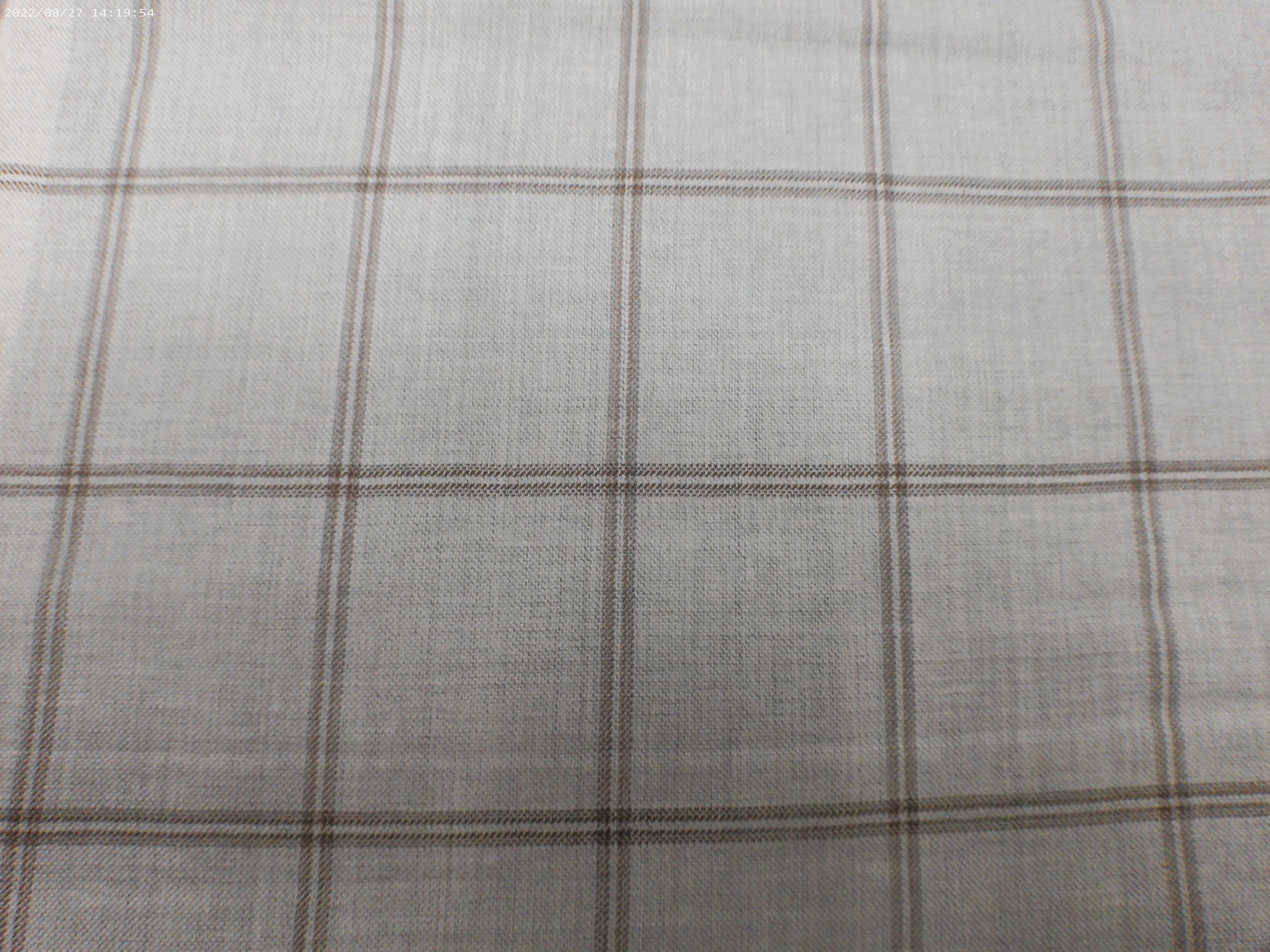 Wool worsted from Italy. For that fine summer suit. Dark sand double overcheck windowpane on a light oatmeal background.