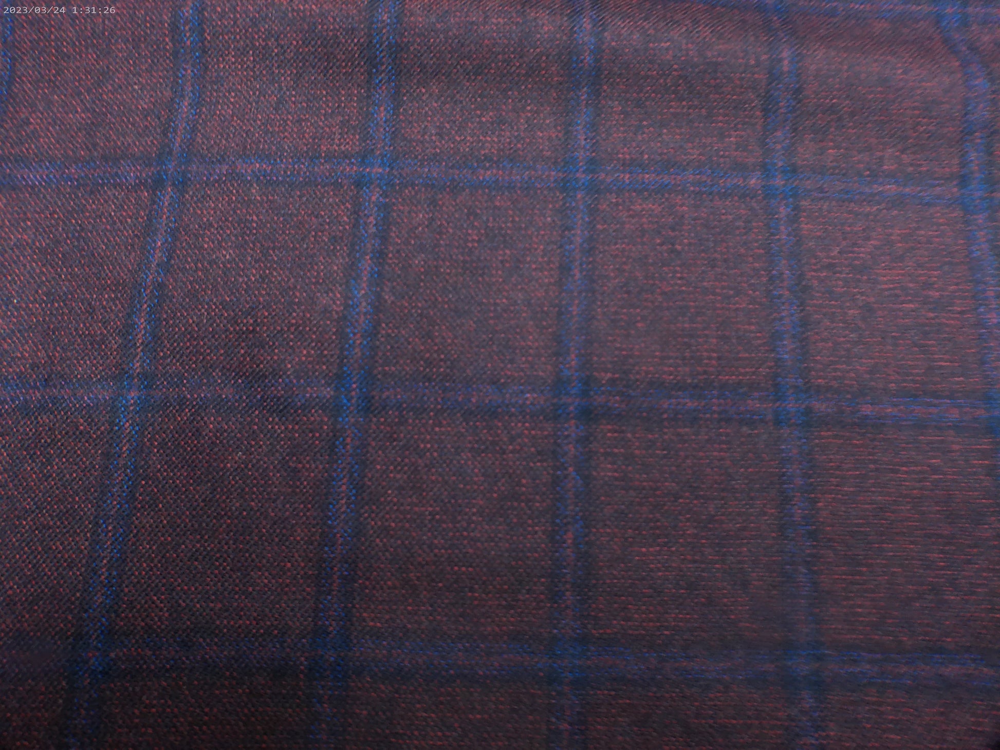100 % Wool Worsted from Italy. For that fine jacket or blazer for men and women. D Aubergine eggplant pin-dot with a double a light double dark lavender windowpane overcheck.