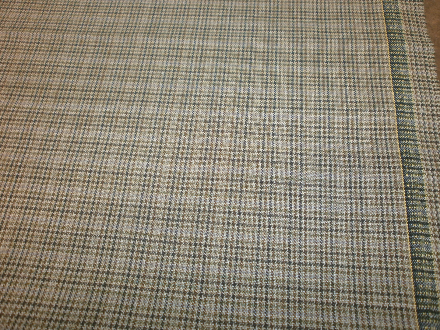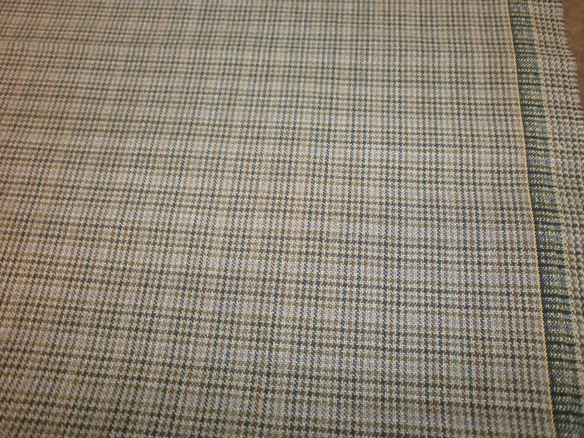100% Wool Worsted. From a renowned Italian mill. For that fine summer suit, jacket or fine blazer. Moss green multi coloured plaid .