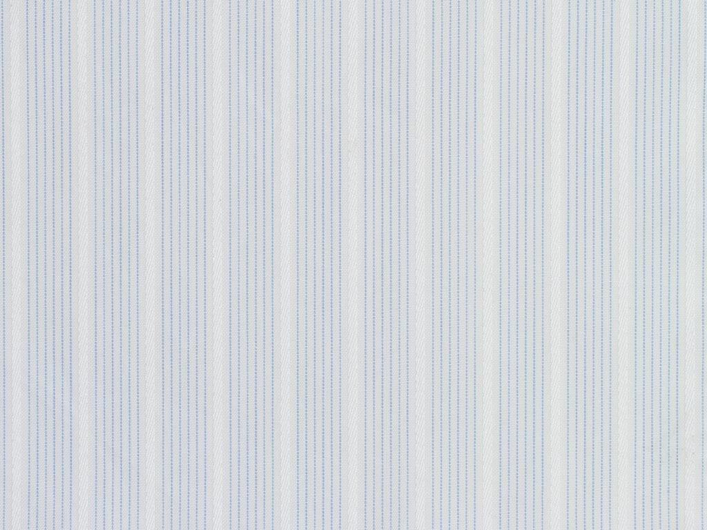 100% Egyptian cotton, 2-ply, with a Super 140 count, with a white background with blue hairline and raised white vertical stripes. Woven by a peerless Italian mill with a stunningly beautiful garment in mind.