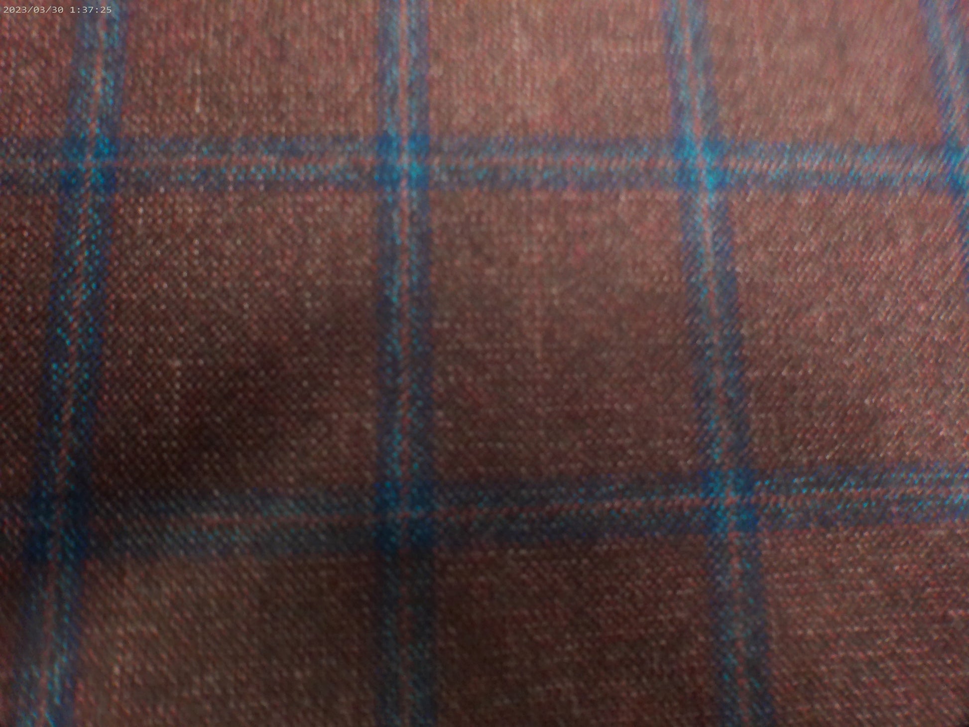 Cashmere-Wool from Italy, for that superb jacket or blazer for men and women. Light brick red with a double blue over-checked windowpane.