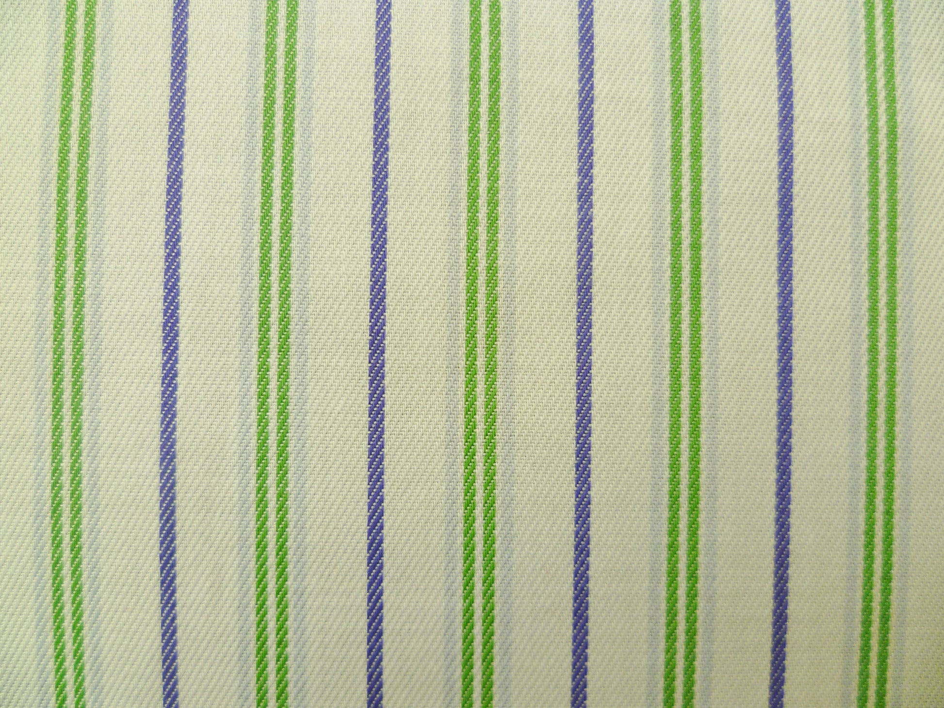 100% Fine Egyptian Cotton, 2-Ply with a Super 140 count, with grass green, indigo, light grey and white multi-stripe from a fine Italian mill. Suitable for fine shirting.