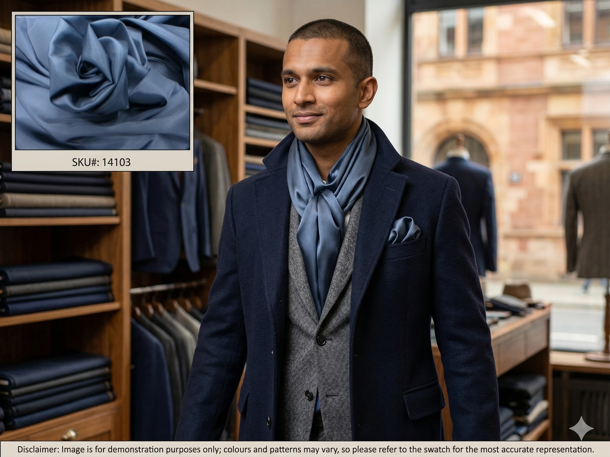 Silk Blend from Italy, for that refined scarf, lining for blazer , jacket or pocket square. Navy blue in colour.
