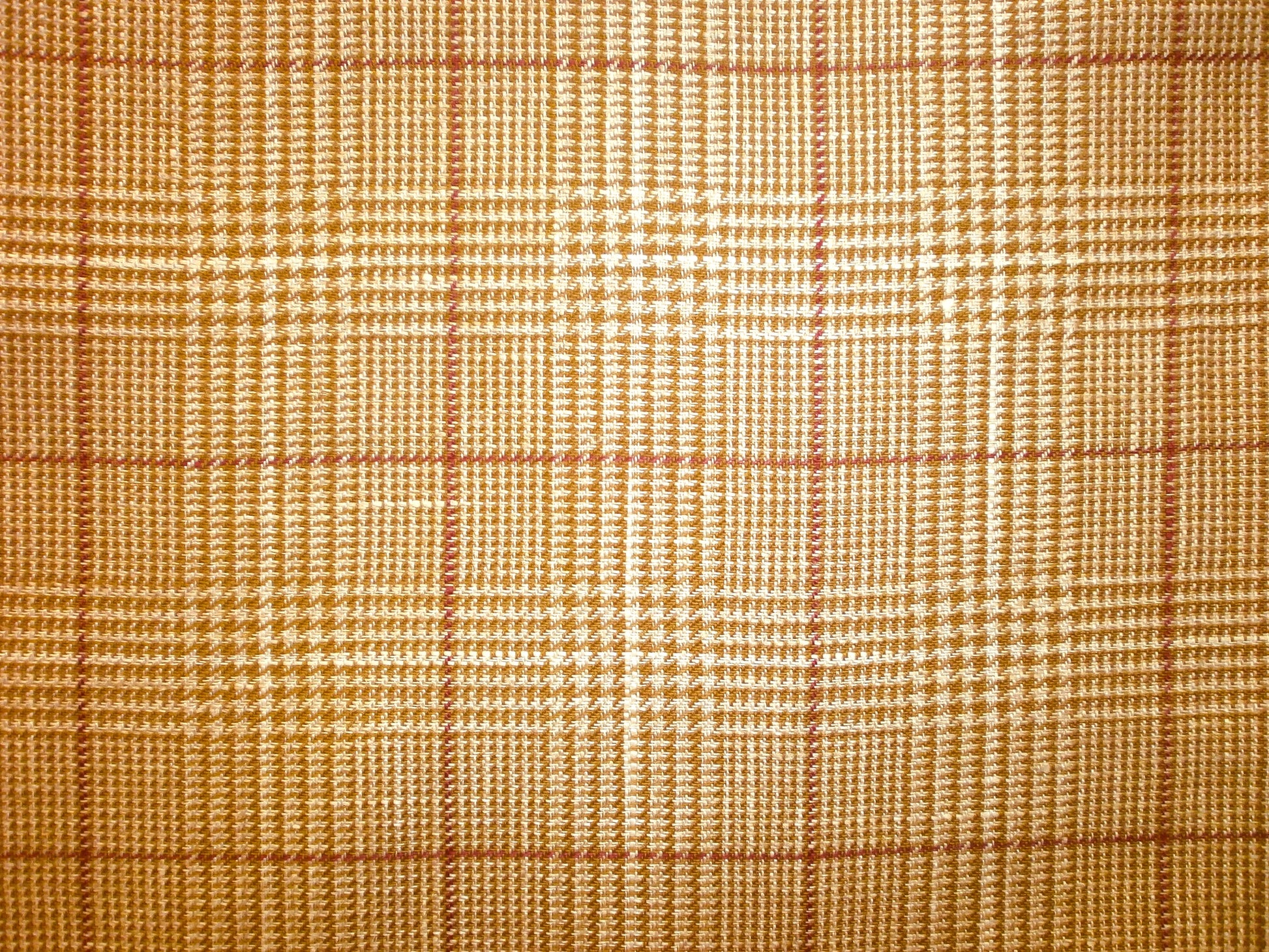 Silk/Linen from a renowned and prominent mill in Italy, for that superb summer suit for ladies and gentlemen ,Close-up of a fabric texture showing a brick red window pane on a beige and caramel prince-of-wales check pattern.