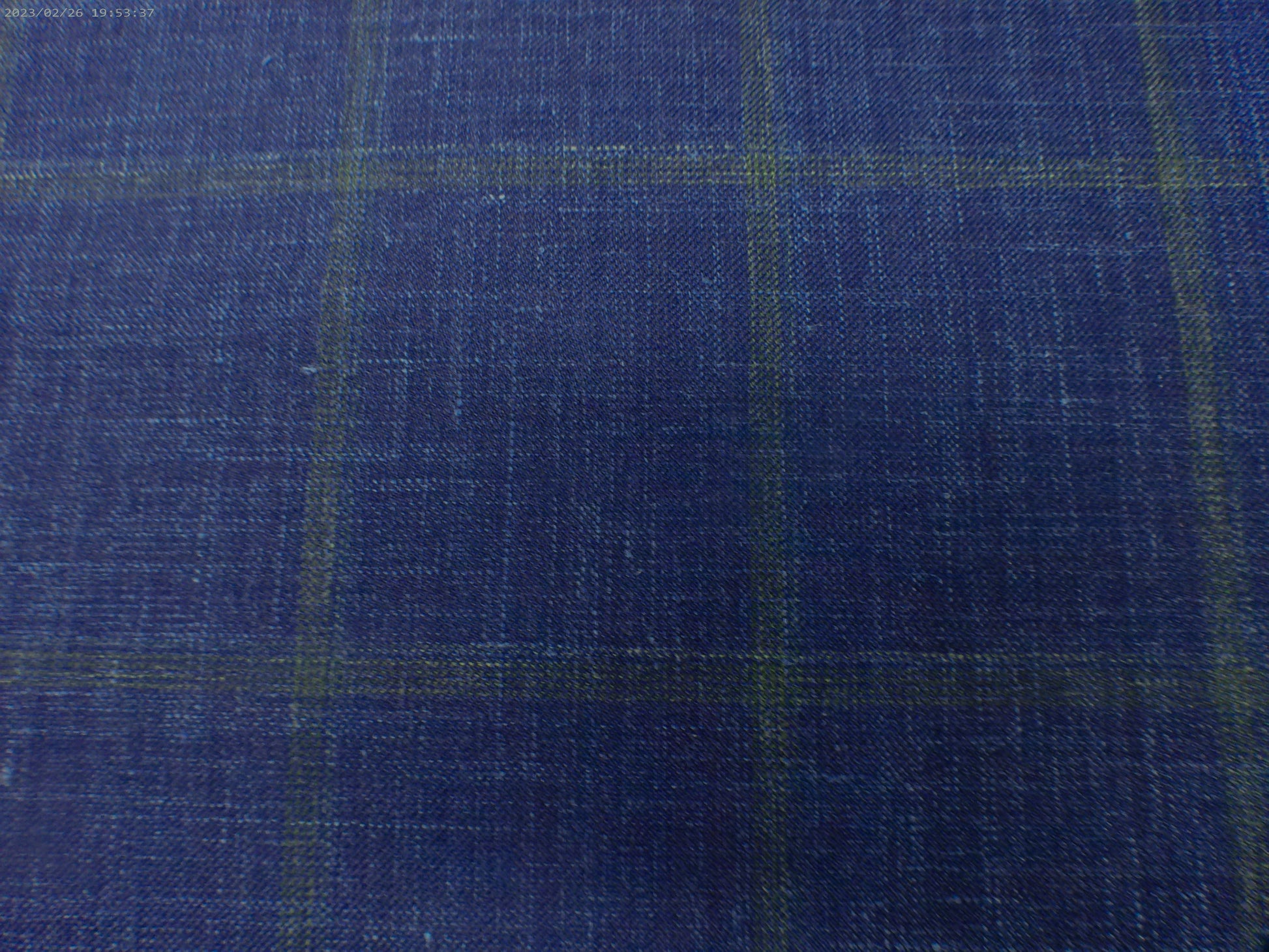 Silk/Linen/Wool from Italy for that refined summer suit , jacket or blazer, for men and women. Marine blue plain with an army green over checked windowpane.