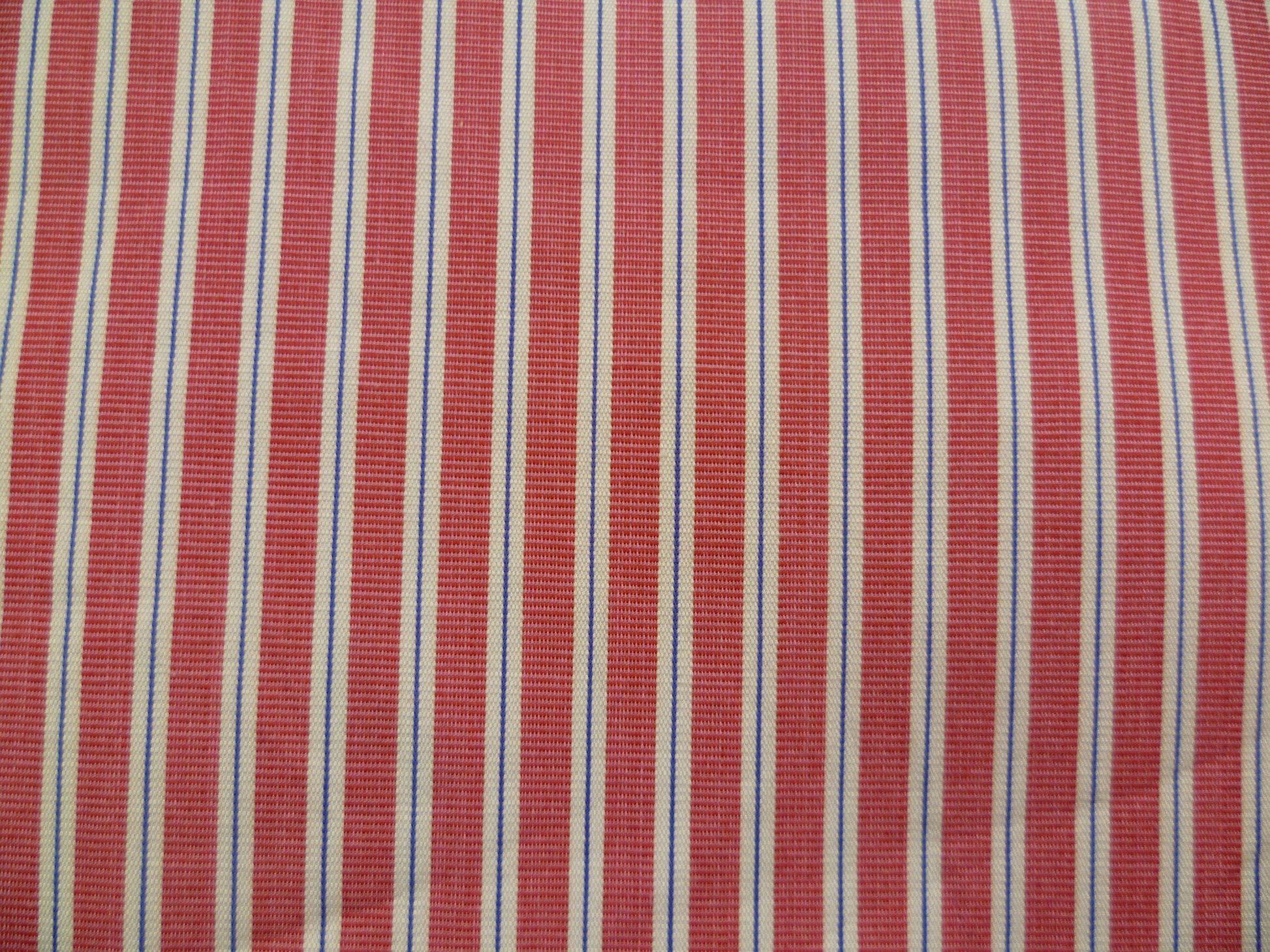 100% Egyptian cotton. 2 ply super 120 thread count. White and blue stripe on a red background. From a renowned Italian mill. For that fine shirt.