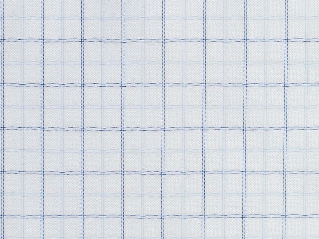 100% Egyptian cotton, 2-ply, with a Super 120 count, with a white background overchecked in blue and periwinkle. An impressive contribution from a noted Italian mill.