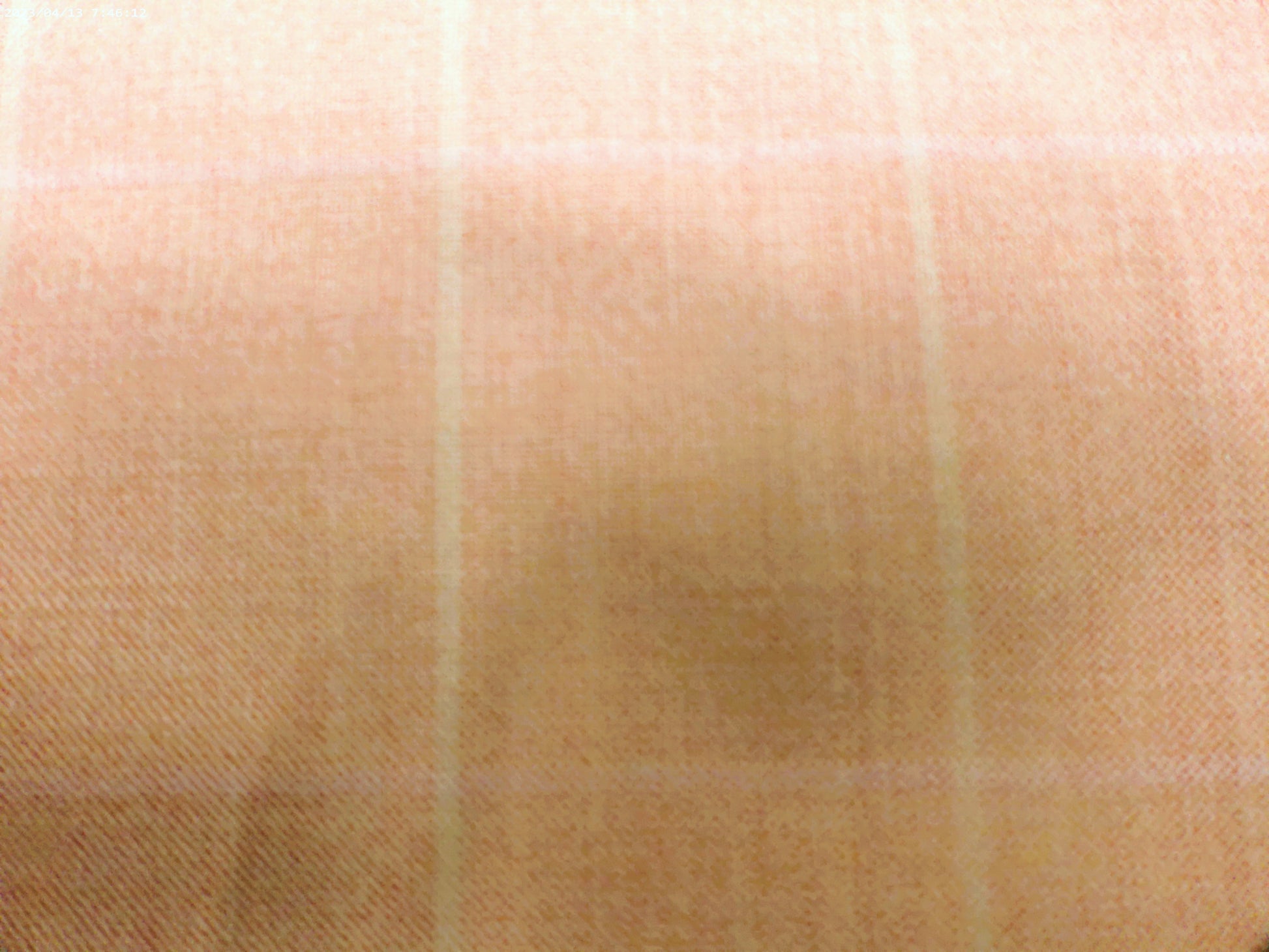 Wool-Silk-Linen from Italy. For that light to mid weight jacket or blazer. Peach colour with a light mustard windowpane over check.