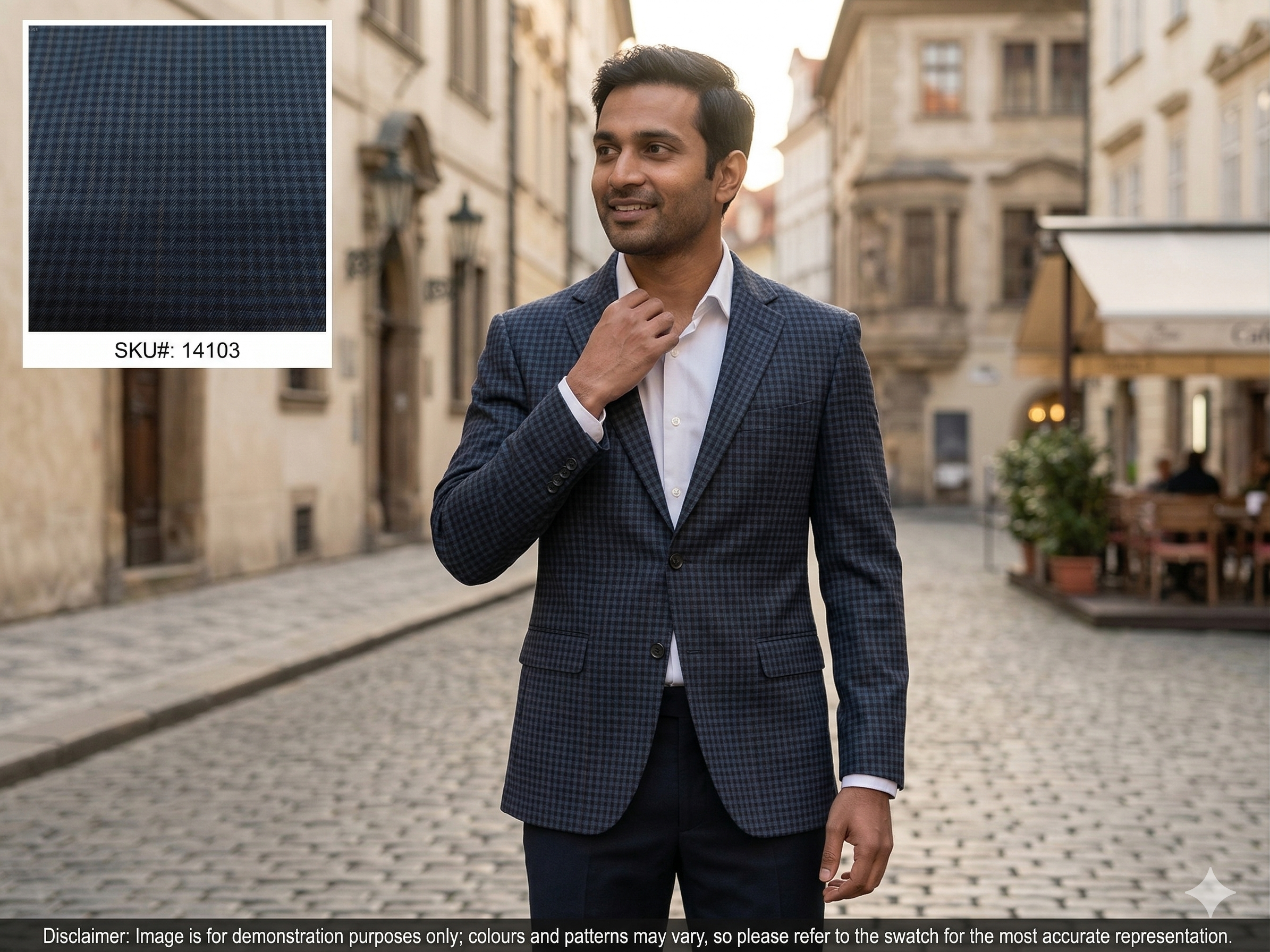Wool-Cashmere expertly crafted in the finest Italian mills, designed for a fine four-season suit, jacket or blazer. navy, dark taupe and navy gun club check pattern. This premium fabric offers a superb drape and a luxurious hand-feel, ensuring both comfort and elegance.