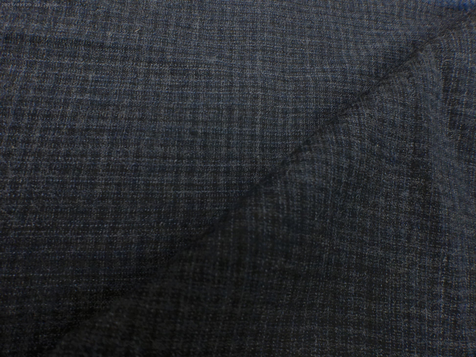 Light weight Wool Jersey from Italy. Navy blue, grey neat checked fancy.
