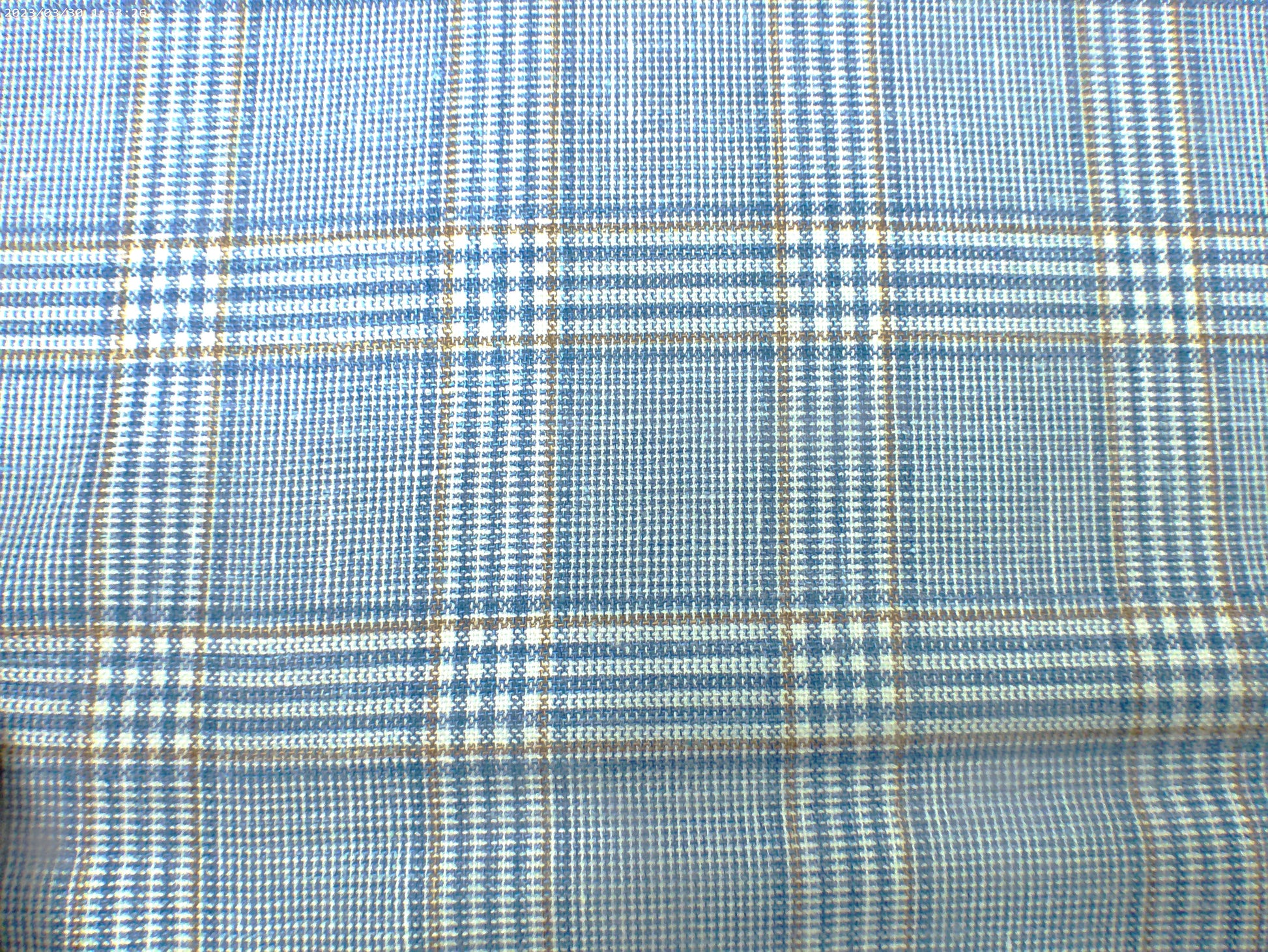 Wool-Silk-Linen from Italy. for that superb summer suit, jacket or blazer for men and women. Sky blue prince-of-wales pattern with a dark caramel check.
