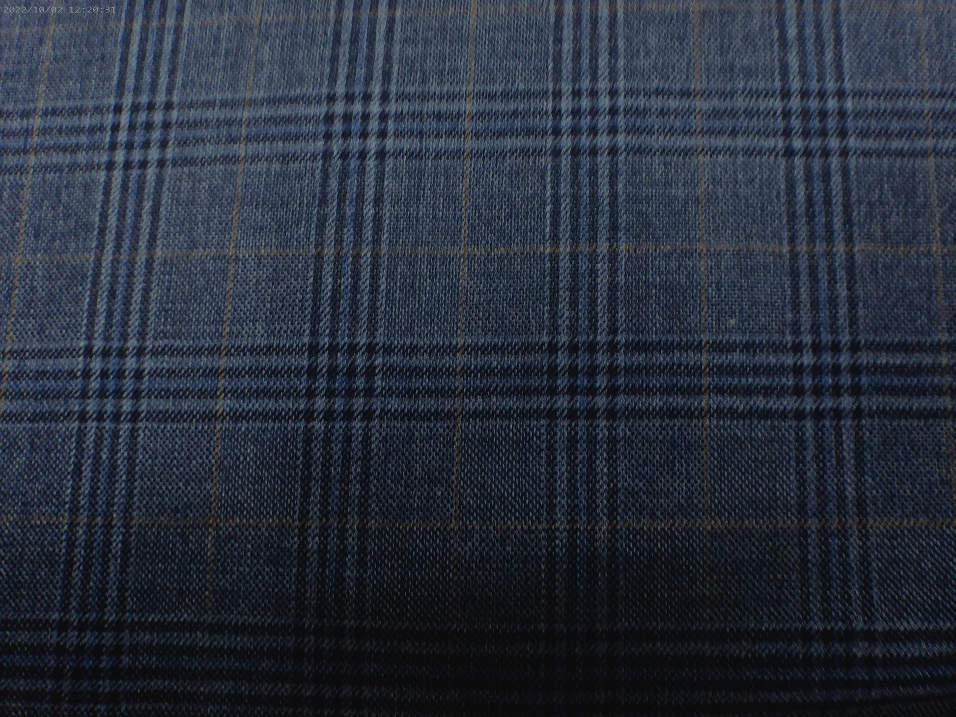 Wool Worsted from Italy. For that refined suit for men and women. Navy plaid on blue background.