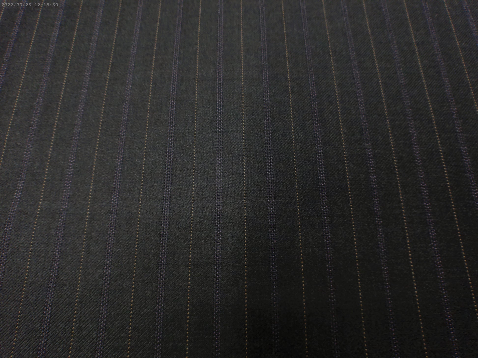 Wool worsted from Italy, For that fine suit for men and women. Mauve and stone stripe on a dark charcoal grey back ground.